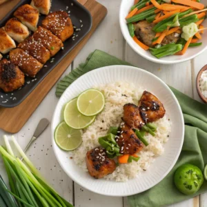 - Steamed jasmine rice – absorbs the sauce perfectly.