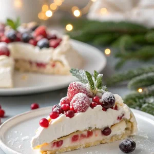 You’ll whip egg whites with sugar until glossy and stiff, shape the meringue into a “nest,” then bake it low and slow until crisp. After it cools fully, you top it with whipped cream and your favorite Christmas fruit. It’s simple, but it feels like a bakery dessert—like a wintery cloud wearing a party outfit.