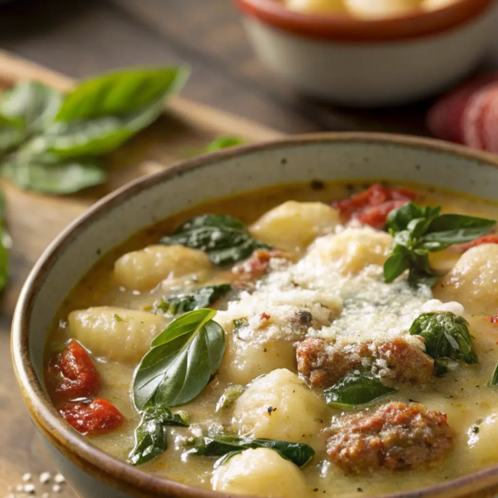 This creamy Italian sausage gnocchi soup keeps things simple — no obscure ingredients, no specialty-store runs. Just honest, hearty components you can tweak based on what’s in your fridge.