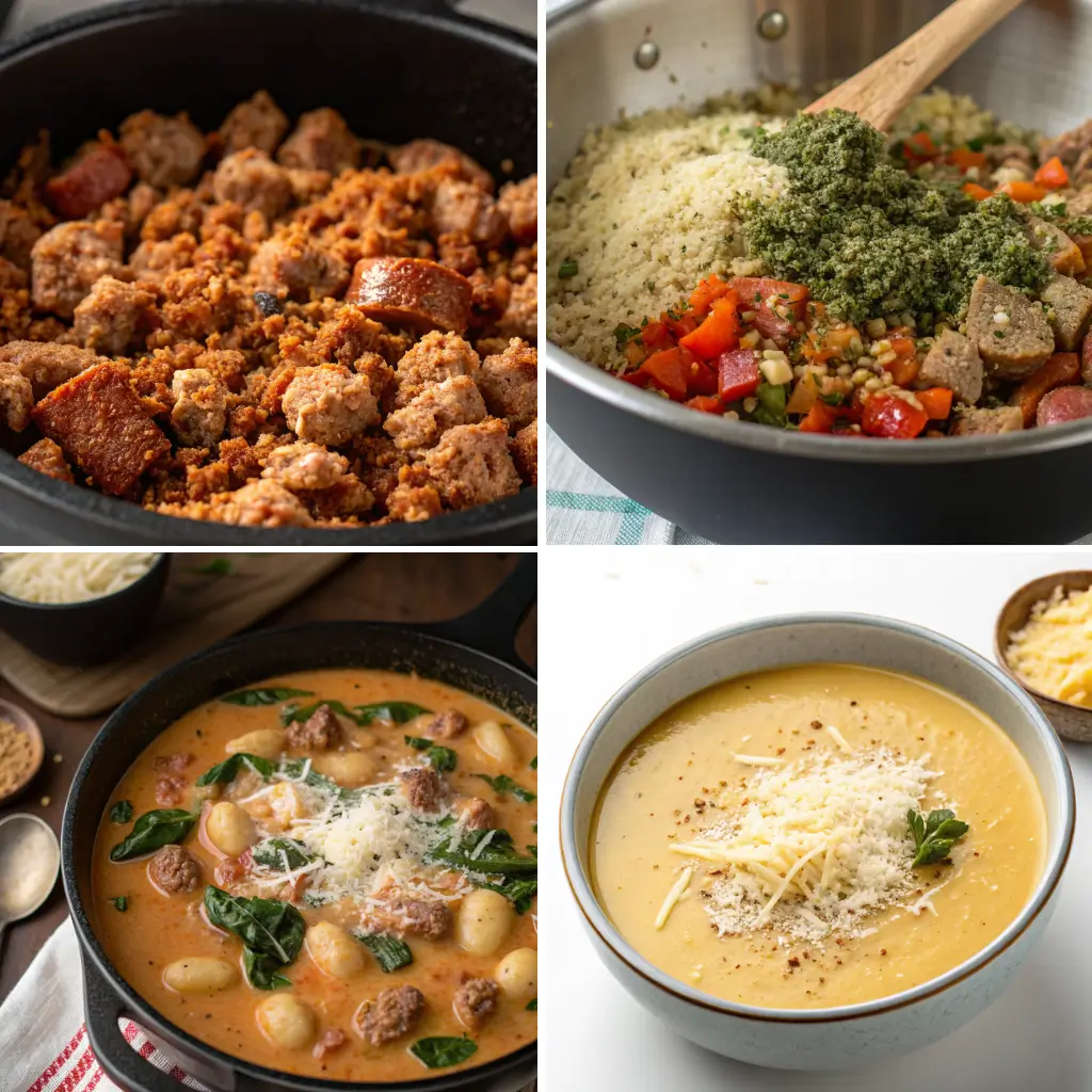 This soup reheats beautifully. Add a splash of broth or milk when reheating. For a vegan version, use plant-based sausage, oat cream, and nutritional yeast instead of Parmesan.