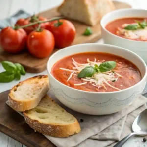This recipe balances bright tomato flavor, a touch of cream, and fresh basil for a cozy bowl that feels restaurant-quality but uses simple pantry ingredients. It’s perfect for lunch, easy dinners, or pairing with your favorite grilled cheese on a chilly day.